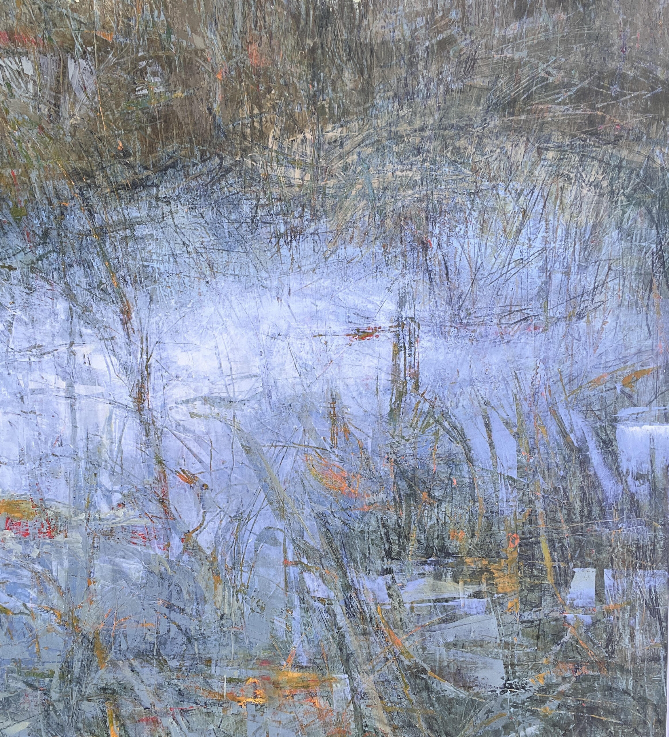 Born into a generation of barefoot, out-after-dark, nature babies, Lori is nurtured by her environment. A painter, Lori’s preferred medium is cold wax, a translucent mixture of beeswax and oil pigments. Her work explores complex layers of color, line and texture. Drawing with unconventional tools, she excavates, creating a calligraphic trail of expressive marks. This image Brackish/detail suggests waters—not salt, not fresh—along the shore. Intentionally, Lori’s paintings evoke emotion, within an abstract conception.